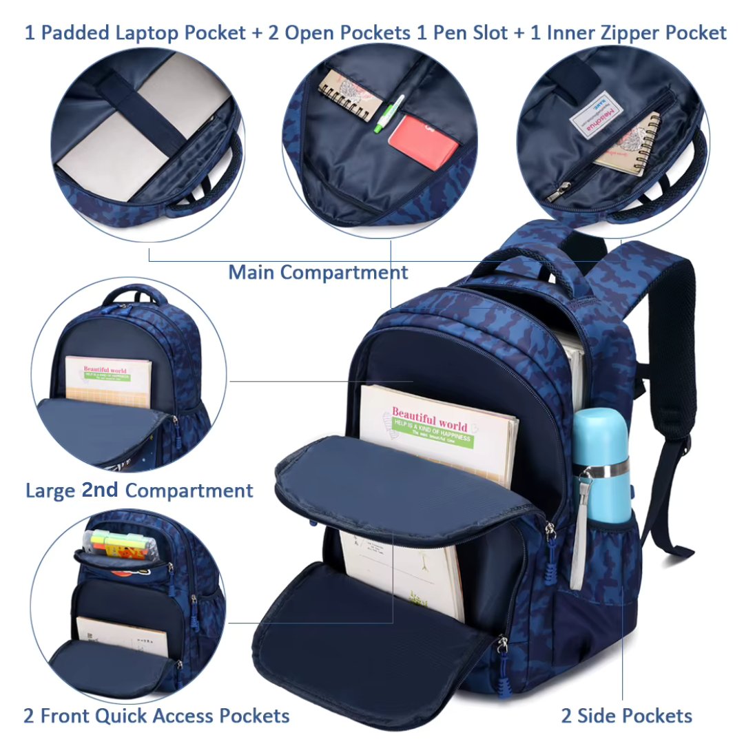 - Durable and Waterproof Design: This 2-piece school bag set is crafted with high-quality polyester material, ensuring long-lasting durability and resistance to water damage, making it perfect for students who are prone to spilling or getting caught in the rain. Perfect for parents looking for a backpack that withstands daily wear and tear.