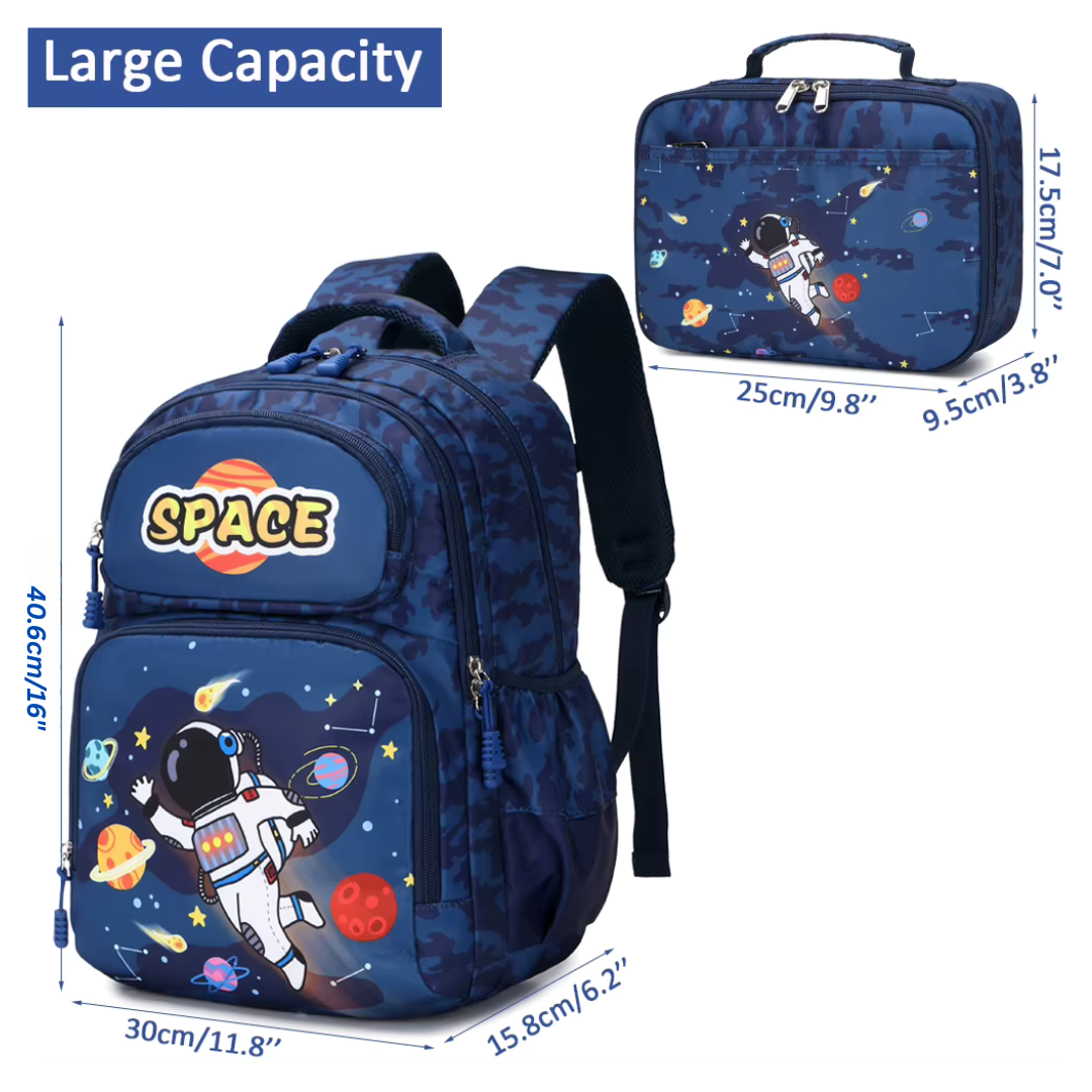 - Spacious Capacity: This set includes a spacious backpack and a matching lunch bag, providing a convenient and organized solution for students. Ideal for kids who need to carry their books, water bottle, and other essentials.
