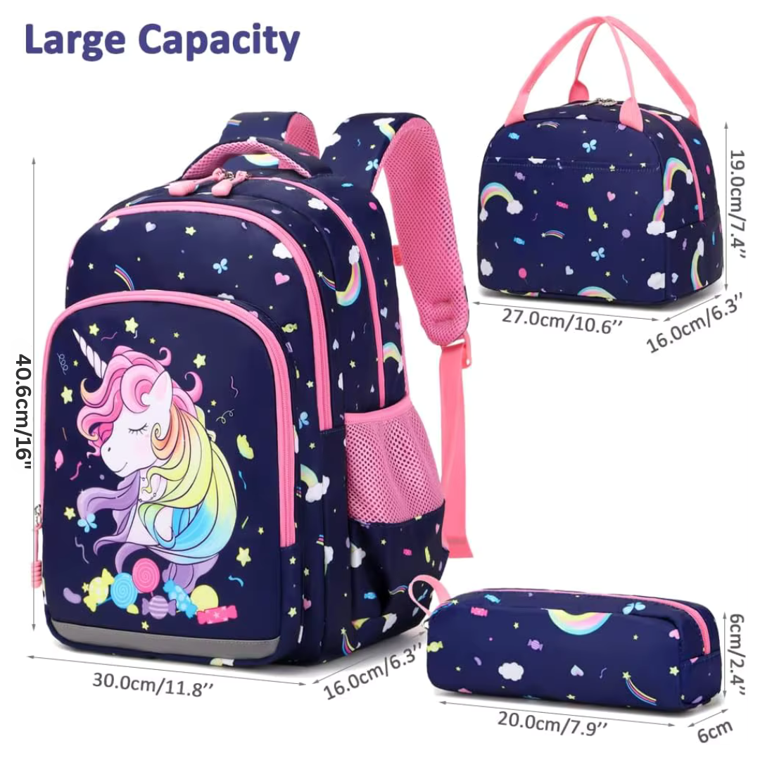 - Durable and Waterproof Design: This 3-piece school bag set is crafted with high-quality polyester material, ensuring long-lasting durability and resistance to water damage, making it perfect for students who are prone to spilling or getting caught in the rain. Perfect for parents looking for a backpack that withstands daily wear and tear.
