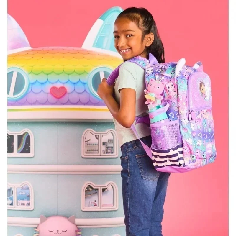 It’s time to pack for an adventure! Our Genuine Smiggle Gabby’s Dollhouse Classic Backpack is the super sparkly meow-tastic bag! It has three zipped compartments to stash stationery, tech and snacks! It’s also packing character zips, dual drink bottle sleeves, padded adjustable shoulder straps and sequins to add a bit of razzle dazzle. Plus, there’s a super cute graphic print of her fave-fur-rite cats and Gabby’s magical, padded cat ears are poking out at the top!