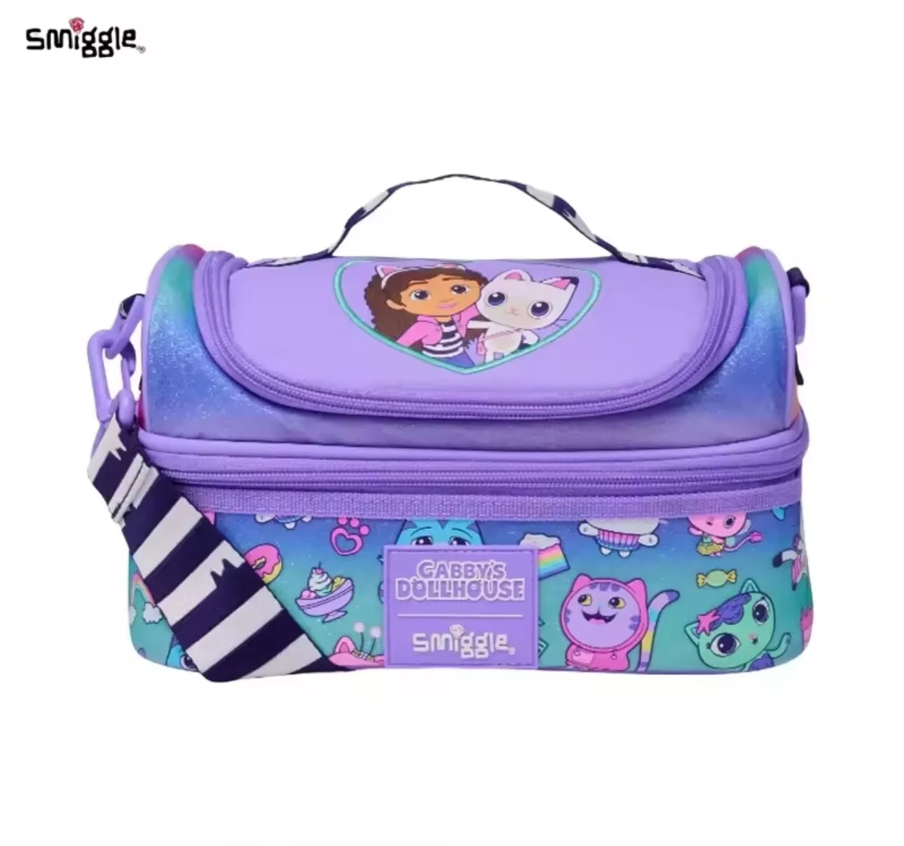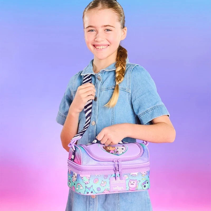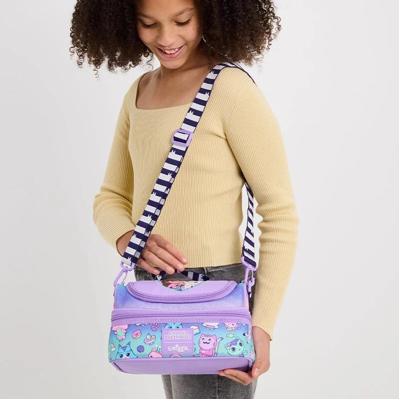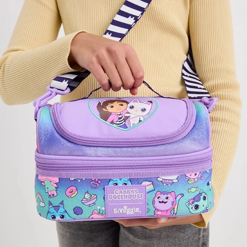 Our Genuine Smiggle Double Decker Lunch Bag comes with a BPA free and insulated lining and a handy carry strap. Take lunchtime to celebrate friendship and all things Gabby Cats with our Genuine Smiggle Lunch Bag!