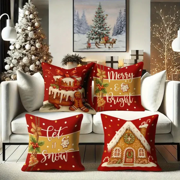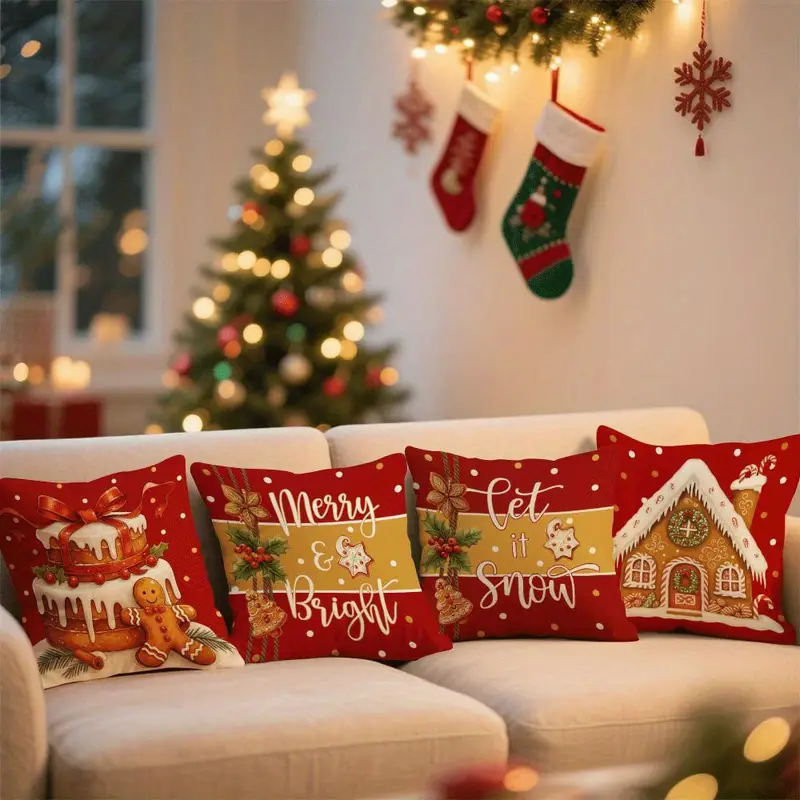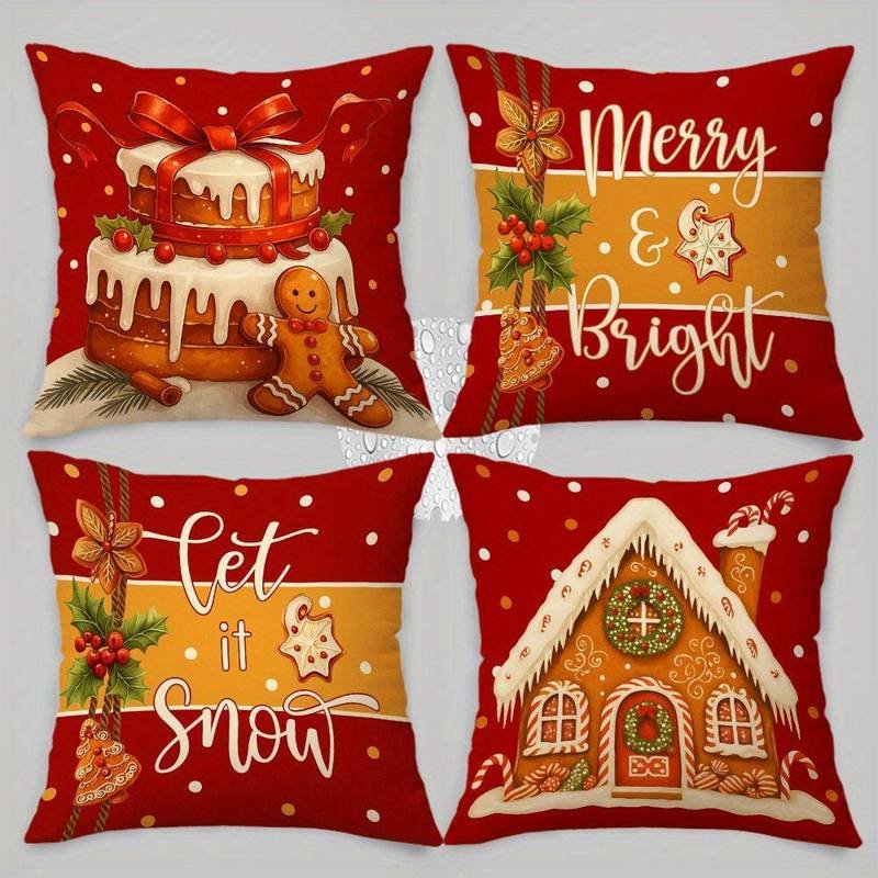 Pillow Covers- 4PC Set- Merry & Bright Gingerbread Man -18×18″