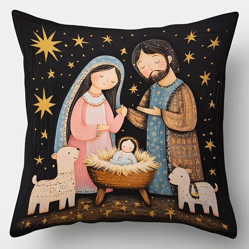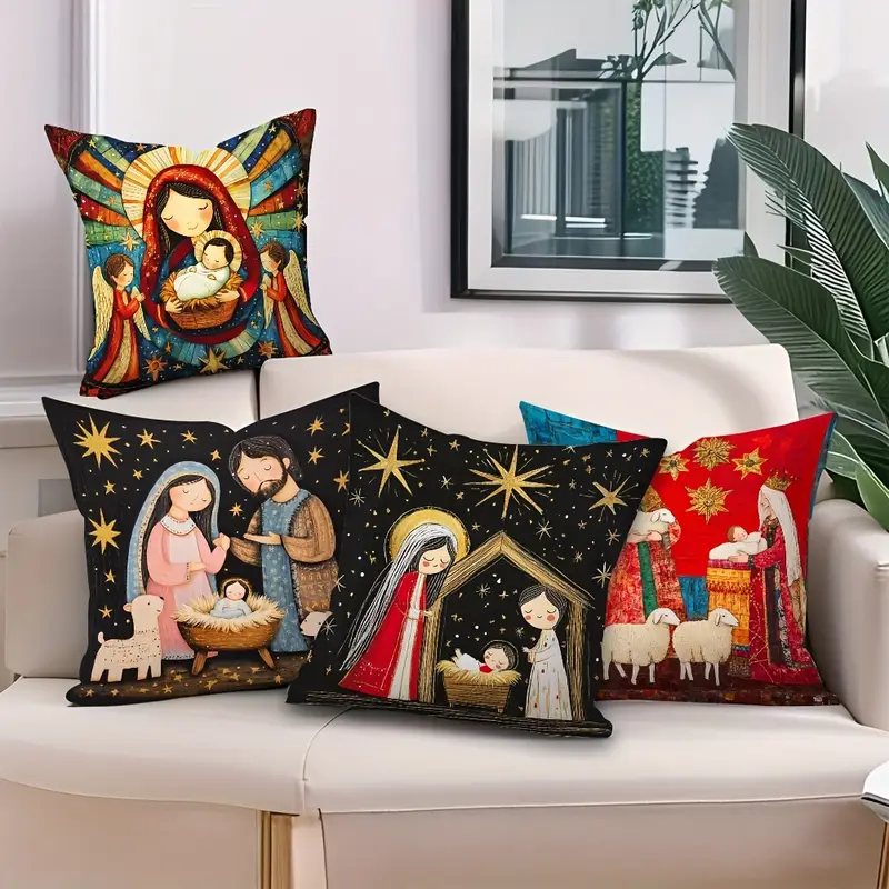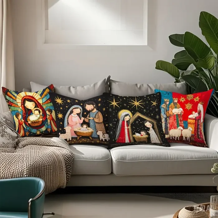 Pillow Covers- 4PC Set- The Birth Of Jesus Christ -18×18″