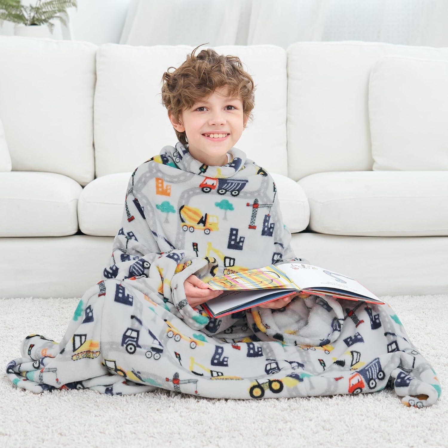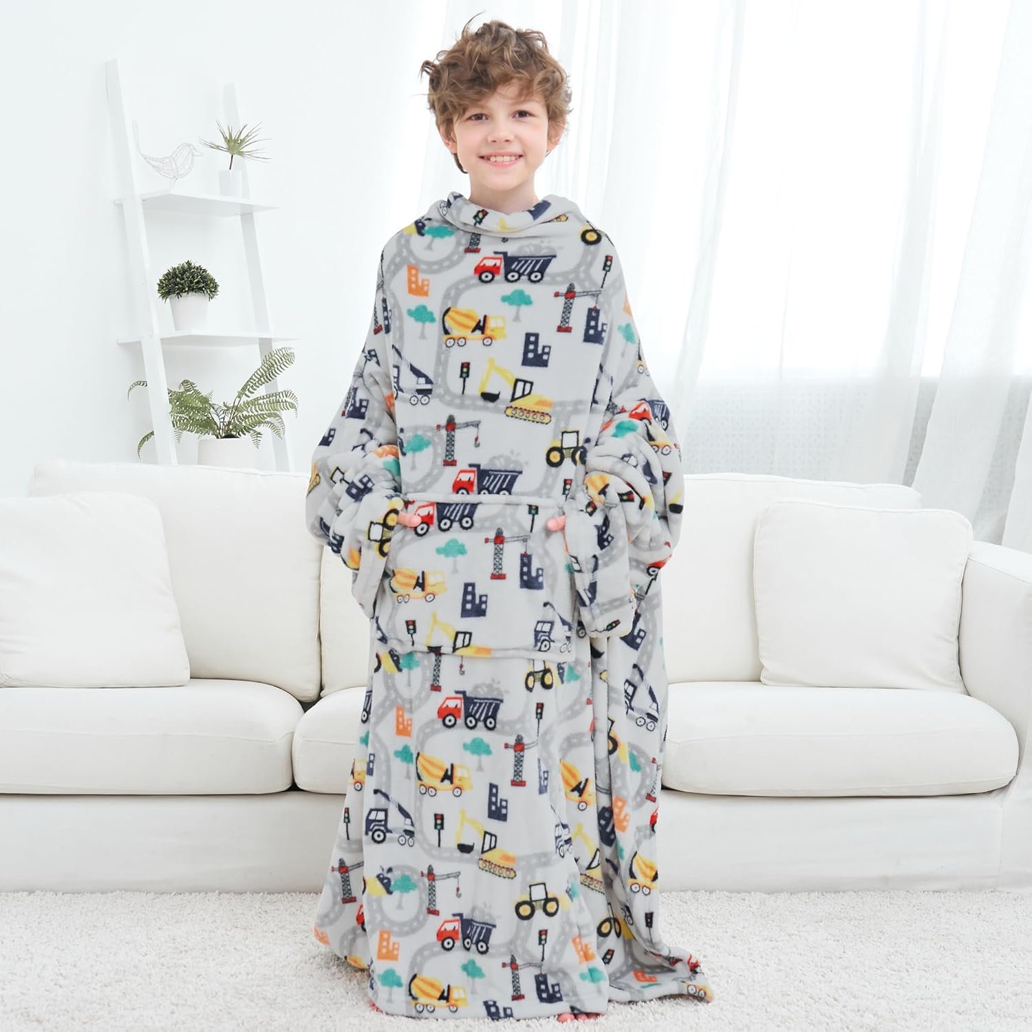 Wearable Lounge Blanket For Kids- Trucks