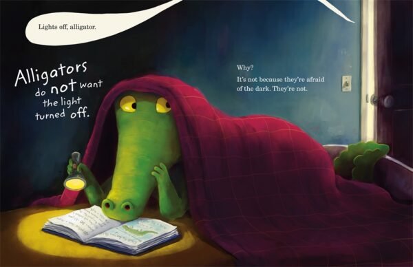 Little alligator has several good reasons for avoiding bedtime: