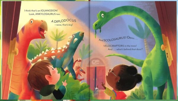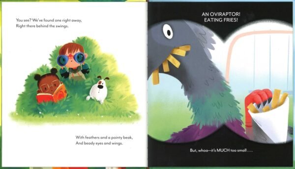Join two curious kids and their adorable dog as they search for dinosaurs in the park—who knows what they’ll find!