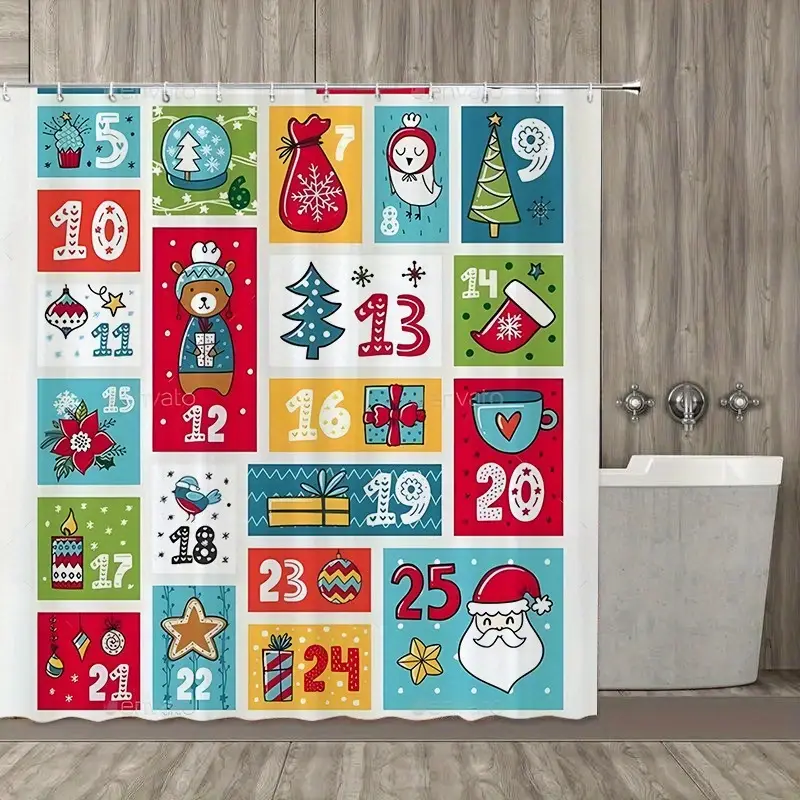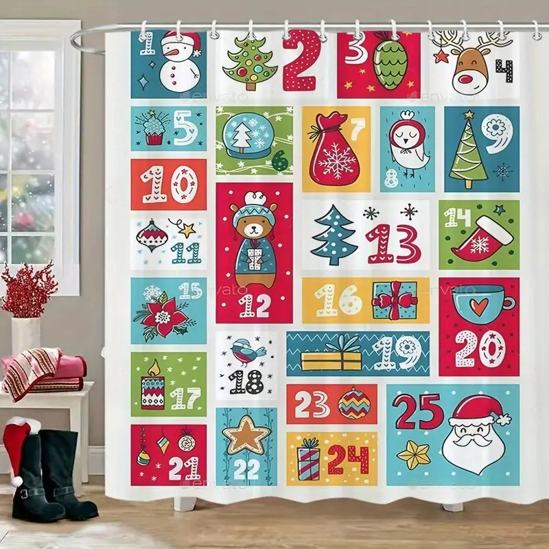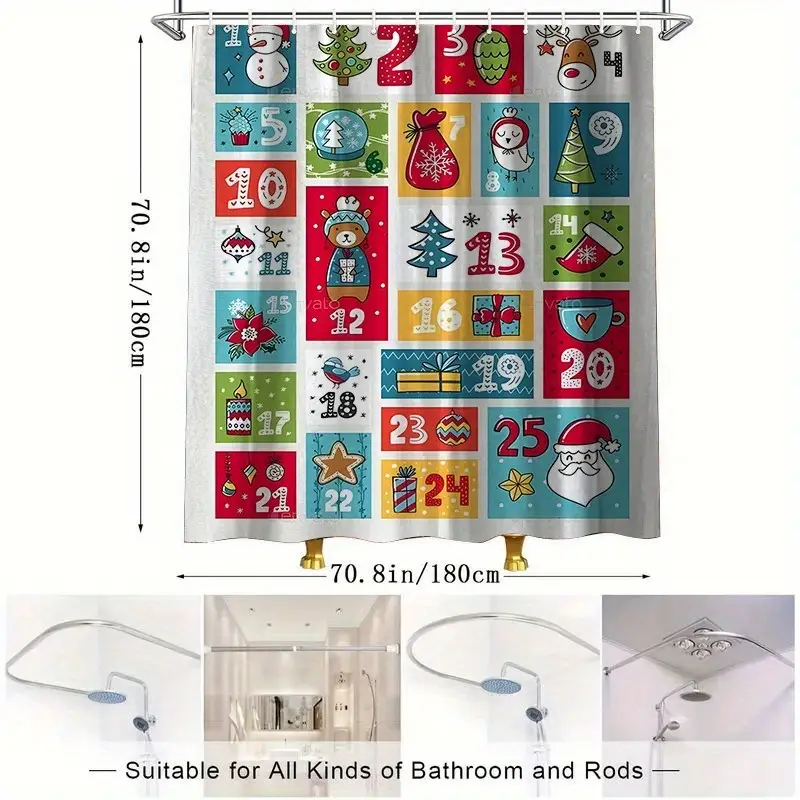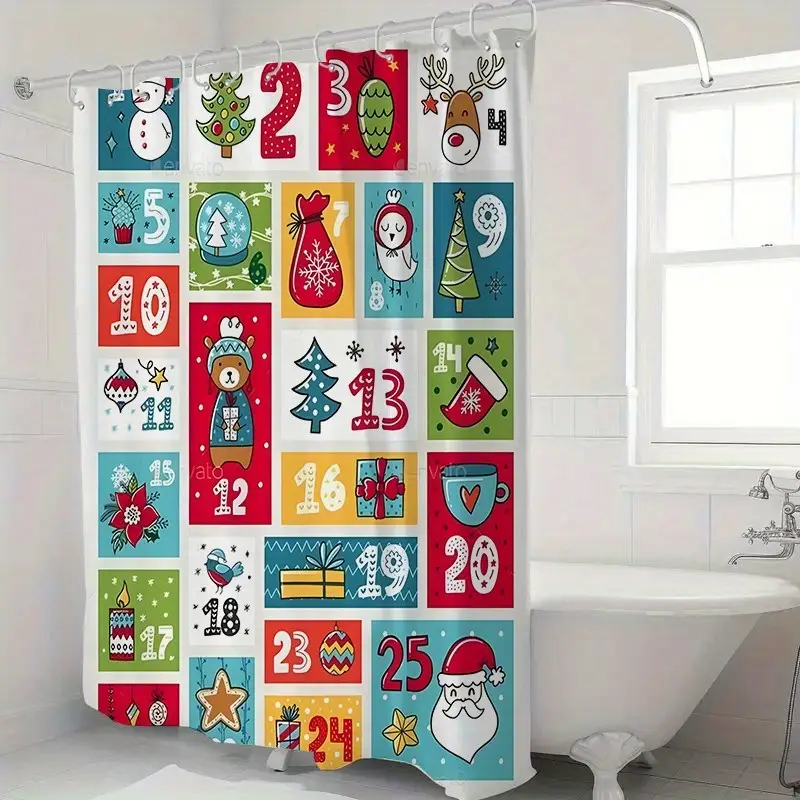- 1-Pack Christmas Shower Curtain – Bathroom Decorations with Hooks
