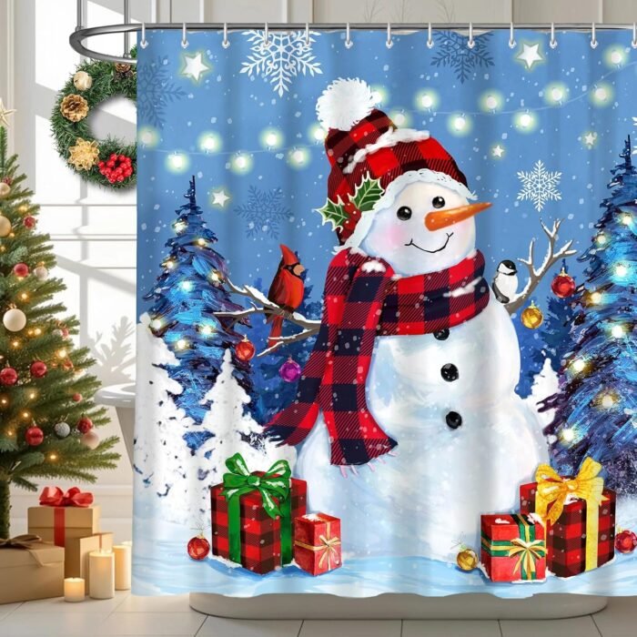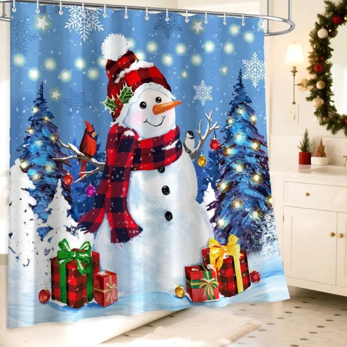- Christmas Shower Curtains Material: This snowman shower curtain is made of durable polyester fiber. It can keep the Christmas bathroom decor fresh. The material is durable and does not fade, providing you with a comfortable Christmas winter bathroom.