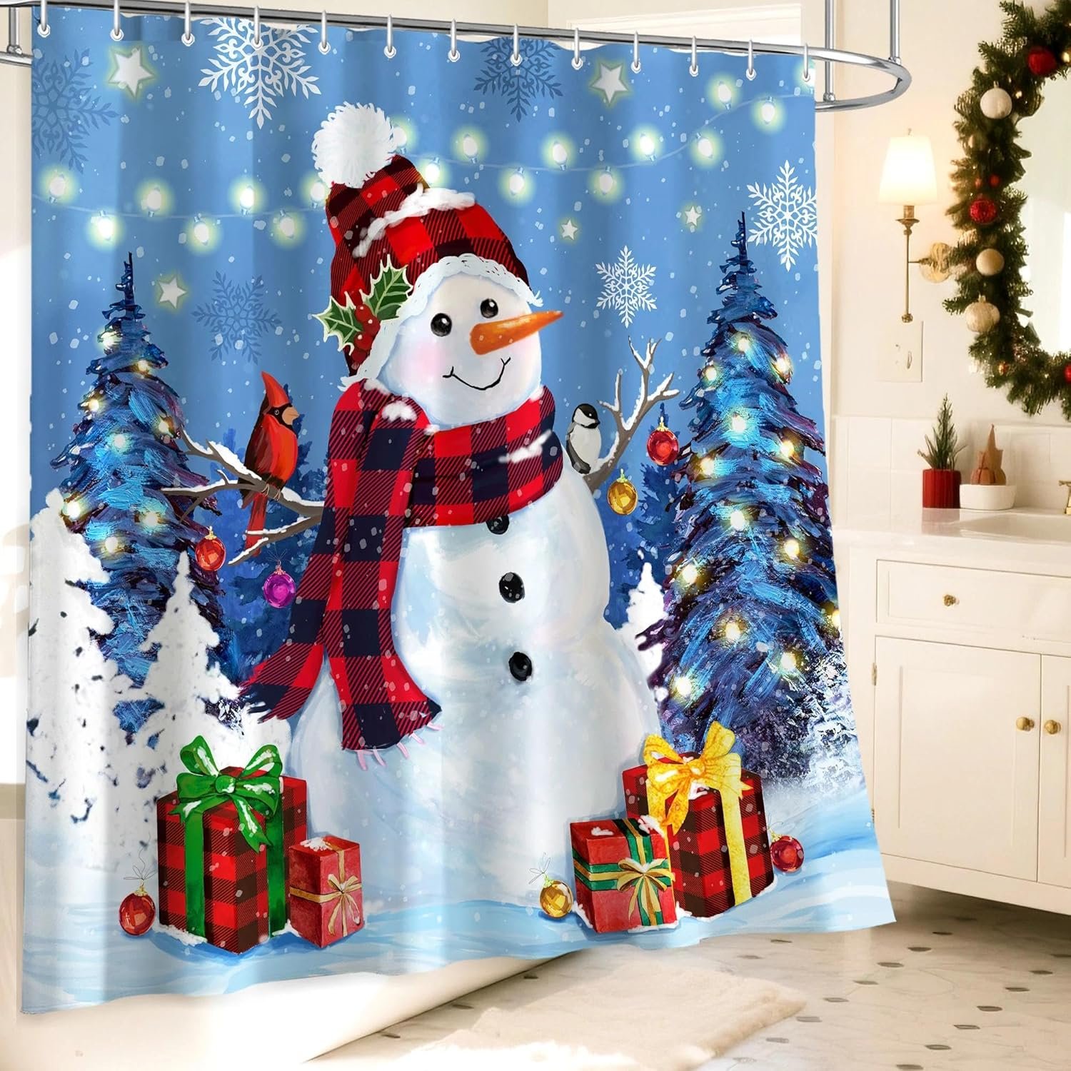 - Effortless Installation: This snowman shower curtain comes with 12 hooks for easy setup, simply hang the grommets on your shower rod without drilling or tools. The durable construction prevents holes from tearing, while the lightweight design allows for quick removal and repositioning.