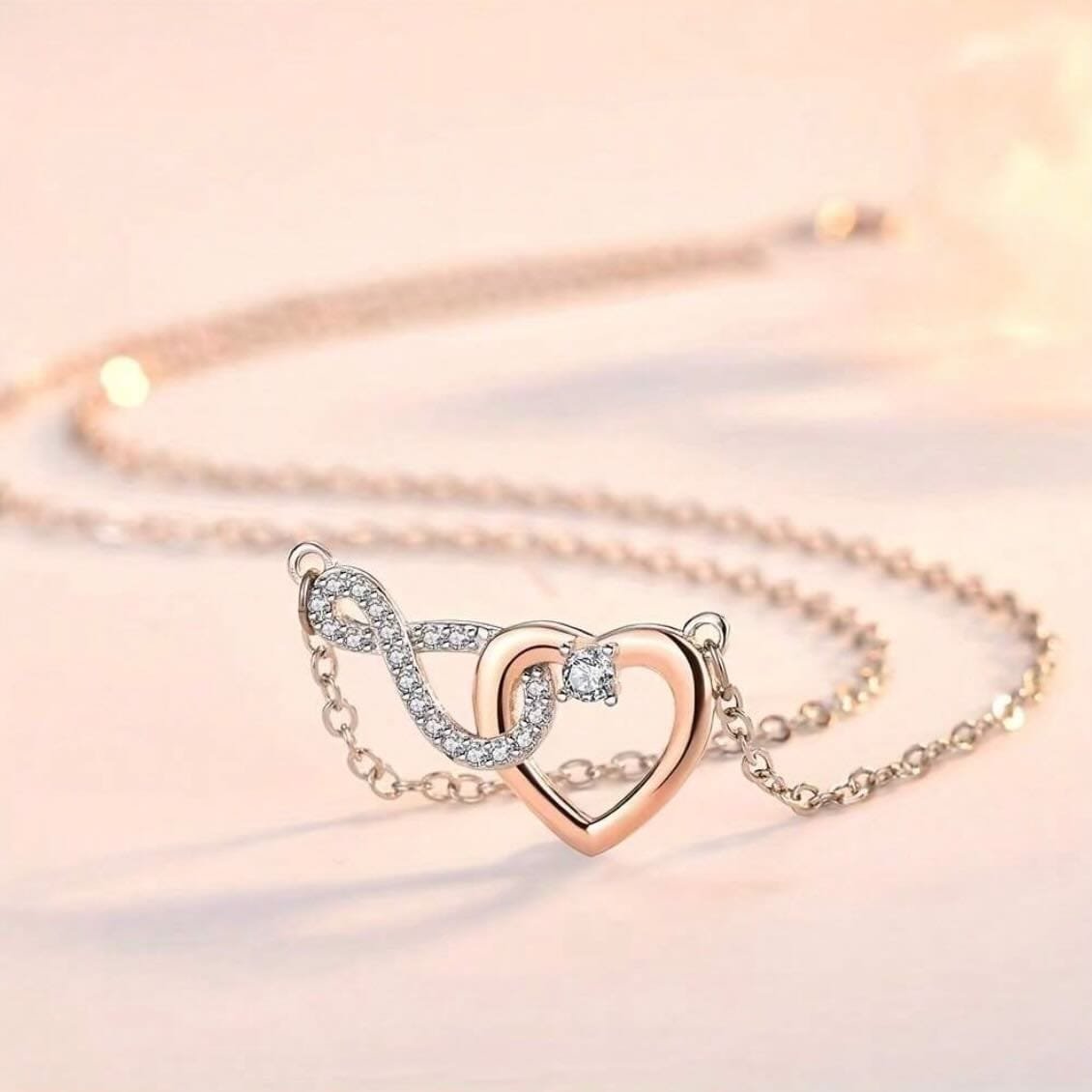 Pendant Necklace- Heart-Shaped Interlocking Zirconia