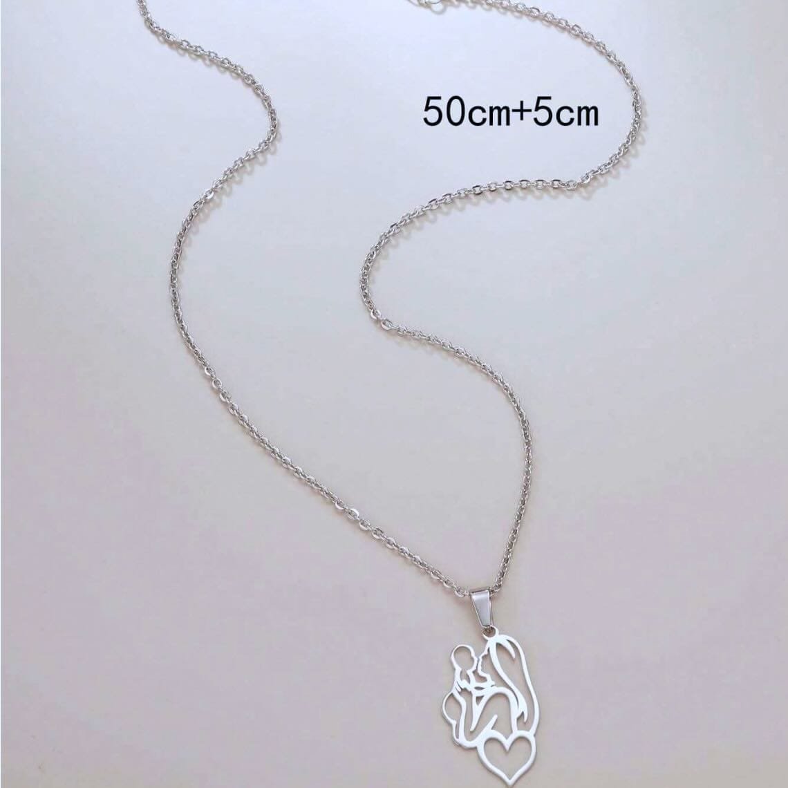 Heart-Shaped Mother & Baby Pendant Necklace. Silver colour.