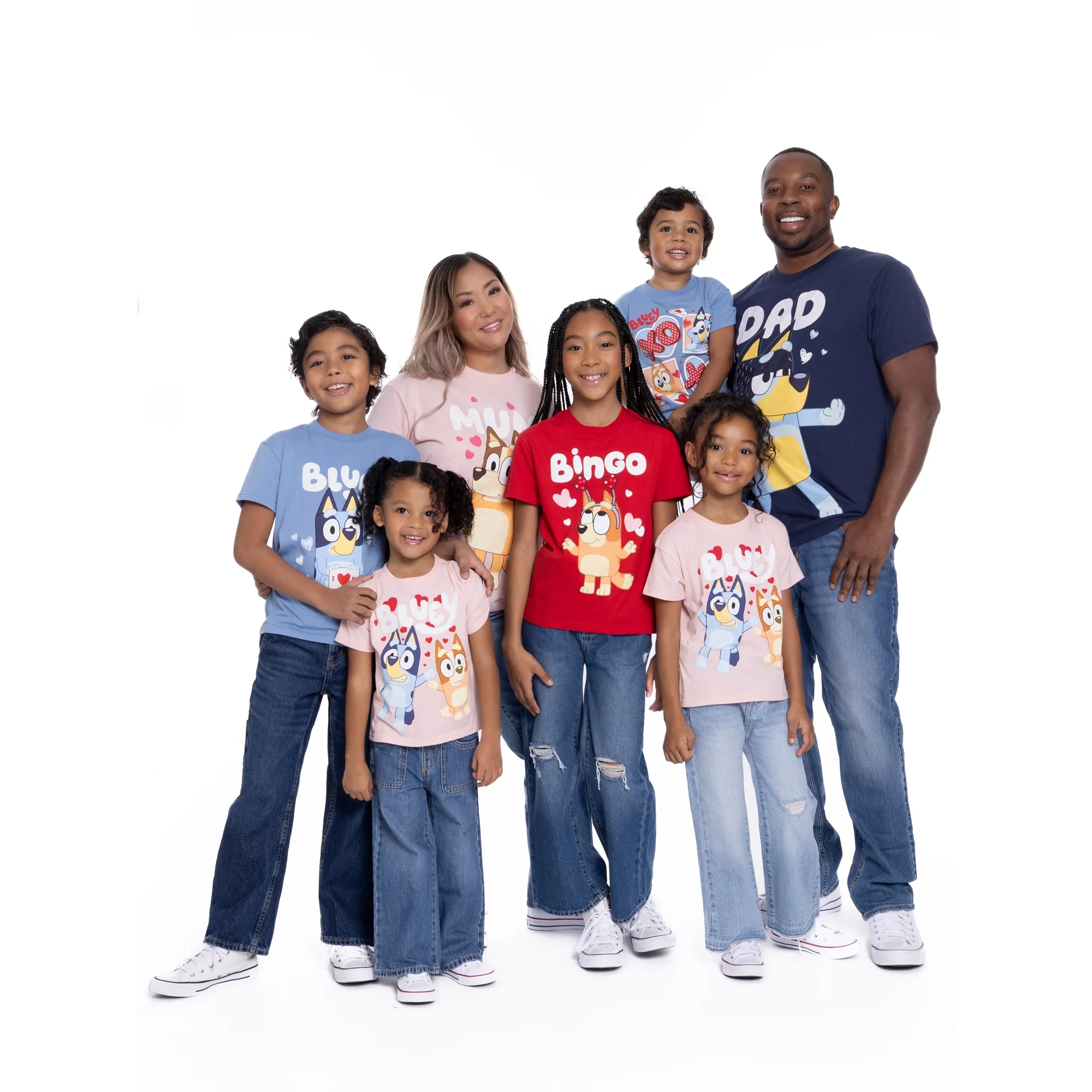 Spread love and cheer with the Bluey Kids Valentine’s Day Short Sleeve T-Shirt! This adorable tee features Bluey and her family celebrating the spirit of Valentine’s Day with fun, heartwarming graphics. Made from soft, breathable fabric, this t-shirt ensures all-day comfort for your little one. Let your child join in on the Valentine’s fun with Bluey and her family in this cute, festive shirt!