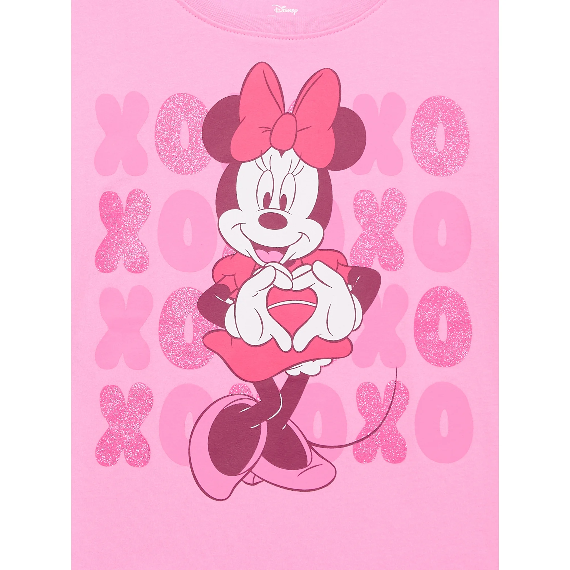 XOXO! Show your love in this adorable Disney graphic t-shirt featuring Minnie Mouse. Style is a relaxed fit t-shirt in a soft comfortable jersey including a graphic print with glitter details!