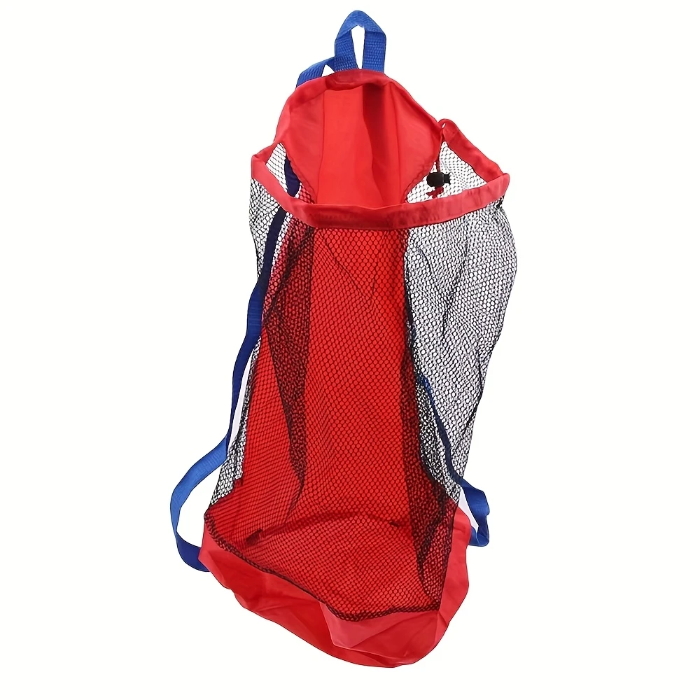 - Large Red Mesh Toy Storage Bag with Shoulder Strap