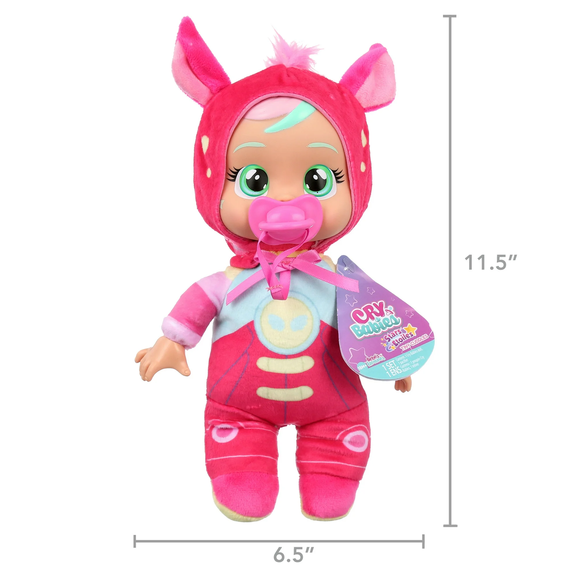 - Plush baby doll: Tiny Cuddles Talents are dressed up as their talent and come with a matching pacifier. Hannah is dressed as in a pink astronaut space suit. Her hoodie features her cute pegasus ears and colorful mane