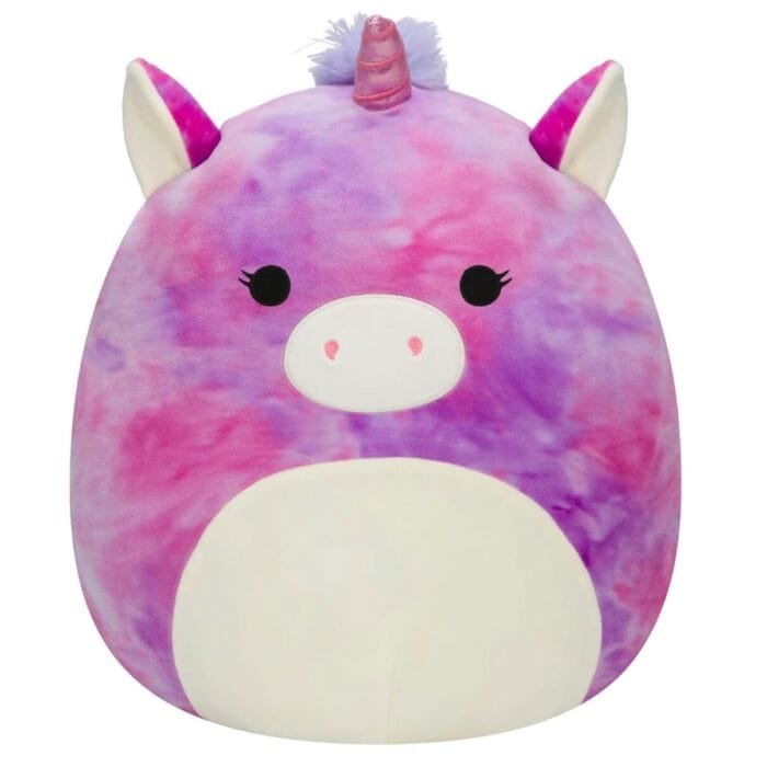 Squish time is playtime when you add Lola to your Squishmallows Squad! This ultra-squeezable 14-inch large purple and pink tie-dye unicorn plush is made with high-quality and ultrasoft materials. Add this adorable unicorn plush to your Squishmallow Squad! Squishmallows are perfect to snuggle with while relaxing at home, watching a movie, or traveling! This authentic Squishmallows plush is easy to clean: hand wash, then air dry. These lovable and squeezable Squishmallows are the softest and cutest plush toys around! Only by Original Squishmallows. Join the Squad!