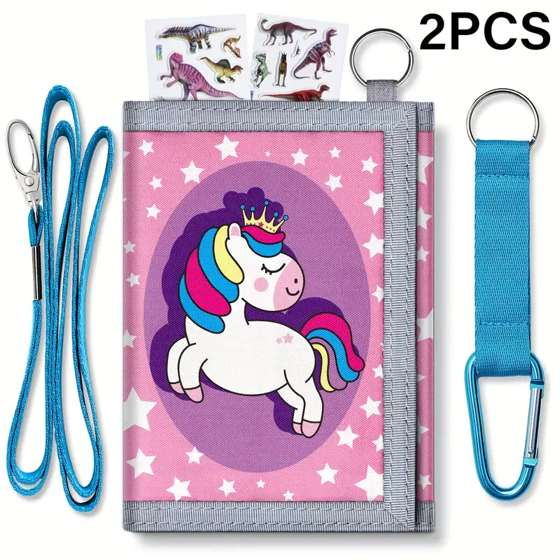 Kids Trifold Wallet – Unicorn w/ Lanyard