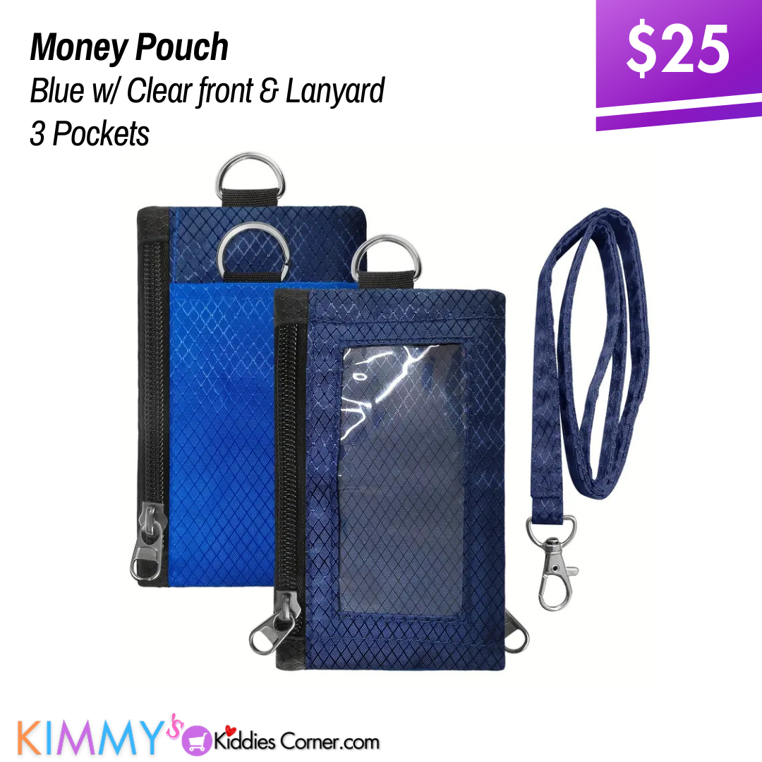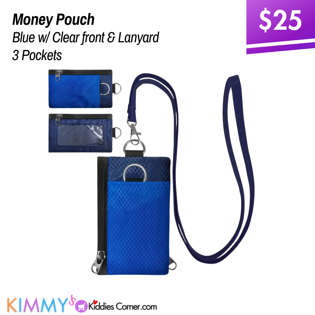 Money Pouch w/ Lanyard & ID Slot RFID- Blue