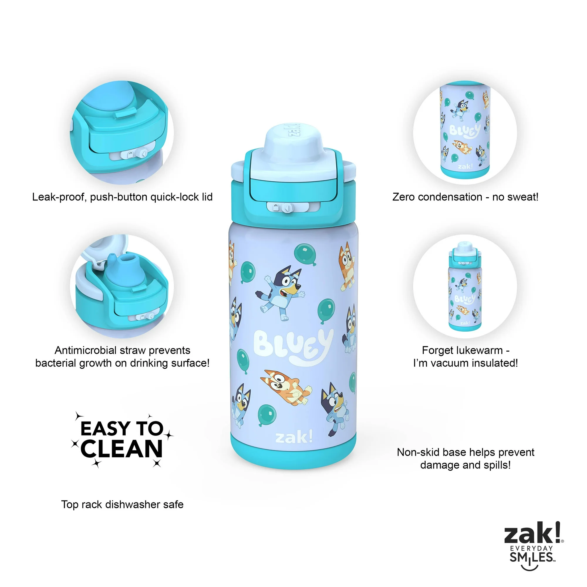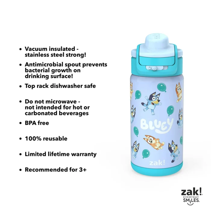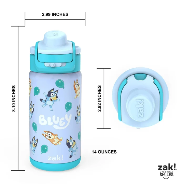 Zak! 14oz Kids Straw Water Bottle, Stainless Steel – Bluey